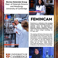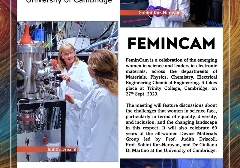 The FeminCam conference was held at Trinity College, a 1-day event to celebrate women leaders in the field of electronic materials, organised by the members of the Department of Materials Science & Metallurgy Device Materials Group (DMG), Prof. Driscoll, Prof. Kar-Narayan and Dr Di Martino. The event featured 10 amazing talks by women PIs in Cambri…